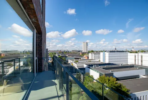 The water is 5 minutes walk away and in summer this is the perfect spot to go for a swim. The main campus of Copenhagen University is around the corner as well as the Metro. 10 minutes walk across the bridge to downtown you will also find the Royal Library, Tivoli Gardens, City Hall and a little further the Central Station. The building has an elevator which goes to both 6th and 7th floor, as the apartment has seperate entrances on both floors.