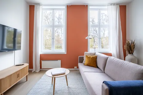 Grünerløkka is a warm and lively district with a variety of charming shopping streets, cosy cafés and exciting eateries. Go shopping at one of Grünerløkka’s design boutiques, vintage shops and flea markets, or go for a stroll along the riverside of the Akerselva river. North of Grünerløkka is the Torshov district which is known for it's innovating restaurant scene. It is only a 10-minute walk to the city centre. Tram numbers 11, 12 and 13 and several buses run frequently only a few blocks away.